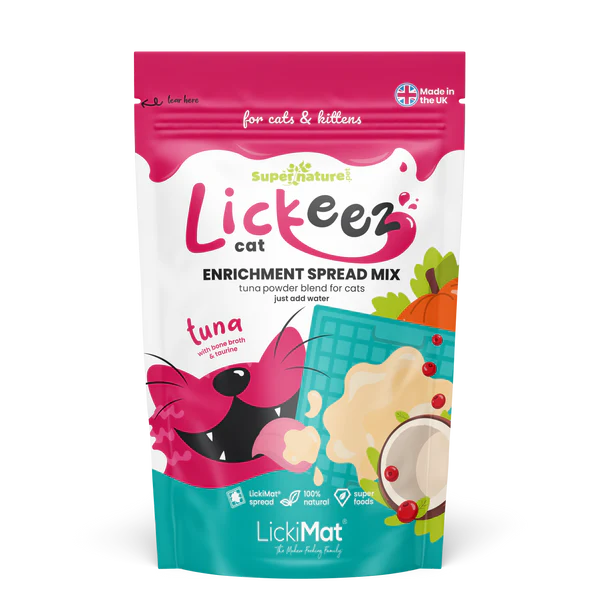 Searching for healthy enrichment ideas for cats? The Supernature Pet and LickiMat® co-branded Lickeez Tuna & Superfood Spread Mix is a paw-some way to keep your feline friend entertained while supporting their health and wellbeing.