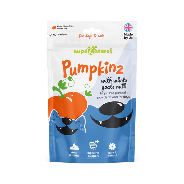 Used as a remedy for digestive issues, 100% natural pumpkin powder with goats milk is naturally rich in fibre which helps to regulate the digestive system and firm up loose stools. This nutrient-packed mix blends fibre-rich pumpkin with the gentle, easily digestible nutrients of goats milk, offering great support for the immune system. Naturally high in calcium, it also helps to maintain strong bones.